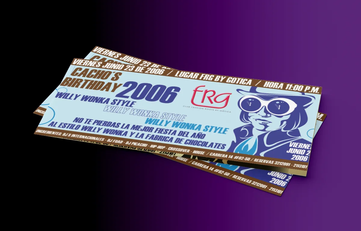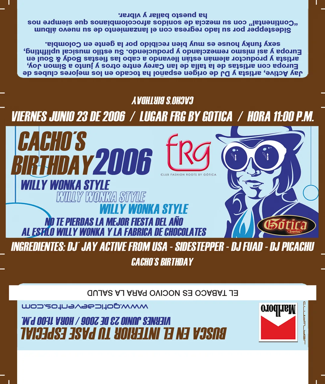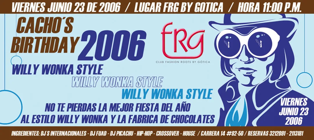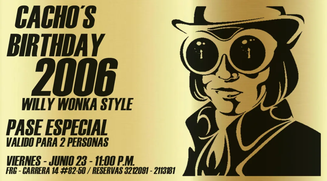 Flyer Chocolatina Cacho´s Birthday Willy Wonka con pase dorado